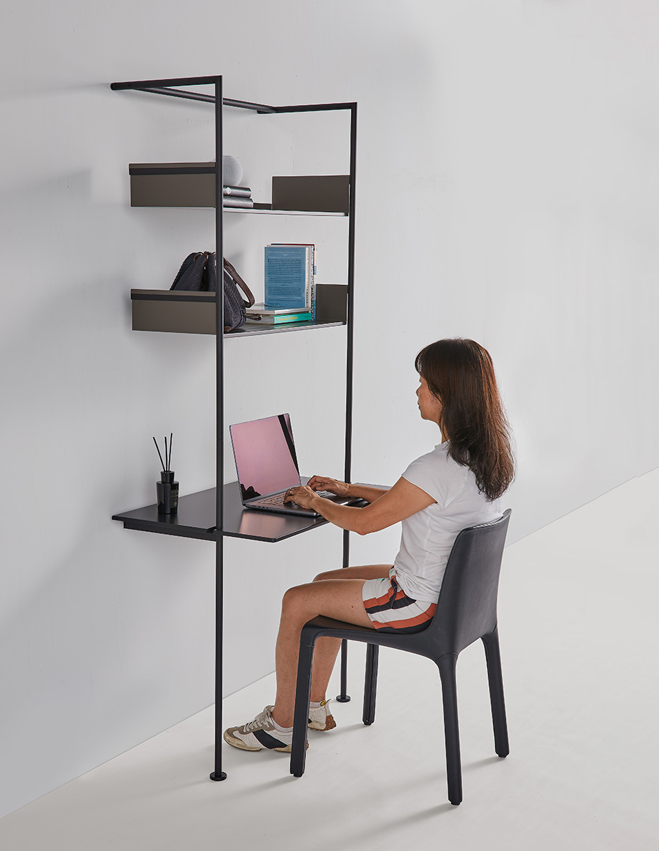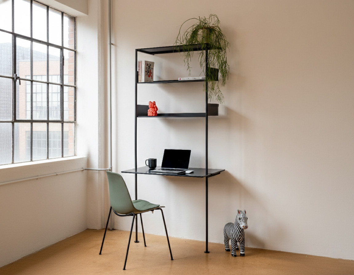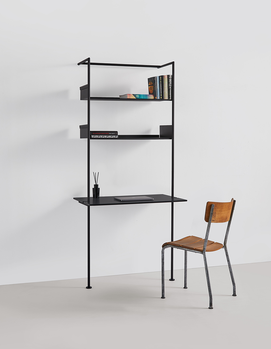 Arbeitsplatz Pool Desk ist die neueste Variante des MOX Klassikers. Es lehnt wie das Pool Regal elegant an der Wand und bietet auf Arbeitshöhe eine praktische Platte zum Schreiben oder Arbeiten. Zwei obere Tablare schaffen zusätzlichen Stauraum für Bücher oder Accessoires. So verbindet Pool Desk Funktion und Leichtigkeit auf clevere Weise.