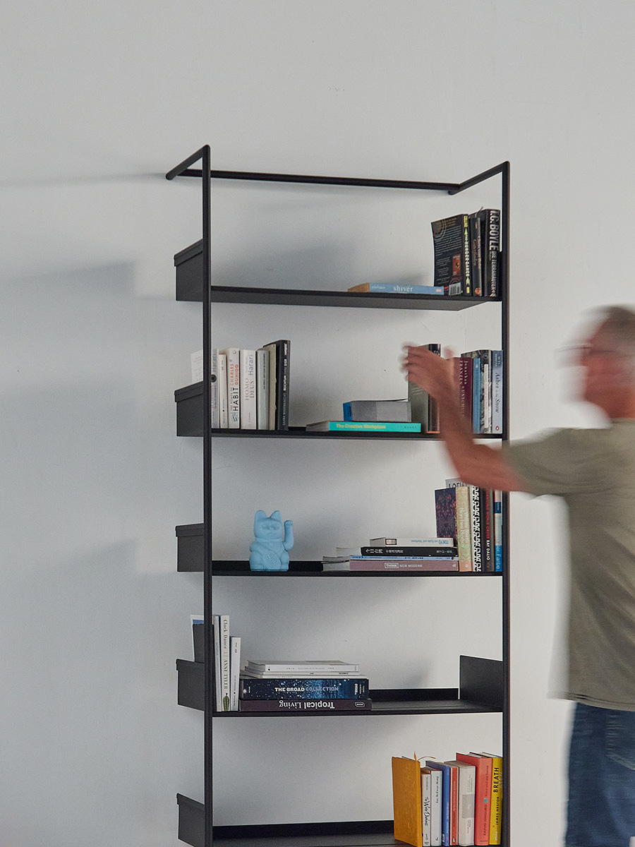 Max Pool 220 Max ist die breite Version des MOX Klassikers. Mit 80 cm Breite bietet es grosszügigen Raum für Bücher und Objekte. Damit das Regal seine Leichtigkeit behält und dennoch stabil steht, fixieren zwei unauffällige Distanzhalter hinten am dritten Tablar den Abstand zur Wand. Sobald das Regal befüllt ist und die Distanz justiert wird, steht Pool 220 Max fest und ruhig.